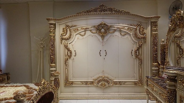 GAMBAR SET TEMPAT TIDUR UKIRAN EMAS MEWAH