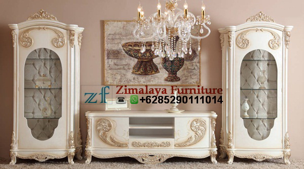 Jual Bufet TV Ukir yang bagus dan mewah ini dengan harga yang sesuai dengan model dan kualitasnya. Bufet ini adalah salah satu koleksi dari Furniture Jepara yang termasuk dari Furniture Mewah didalam ruangan dan sekaligus bisa anda manfaatkan sebagai barang hiasan dirumah anda terlebih dalam ruang tamu. Bufet TV ini terdiri dari Bufet yang diapit oleh 2 lemari dengan model klasik nan Mewah. 2 Lemari yang mengapit Bufetnya dalamnya diberi rak dari kaca yang berukuran 8mm serta dibelakangnya diberi busa yang menempel pada lambung Lemari sehingga Lemari terlihat bagus, cantik dan Mewah. Perpaduan warna dasar crem dan Emas pada ukiranya menjadikan bertambahnya nilai kemewahan terhadap Bufet ini, oleh karana itu segera miliki Bufet TV Ukir yang bagus dan mewah ini untuk mempercantik dan mempermewah ruangan anda.