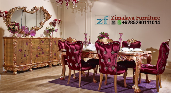 Perpaduan Warna Merah, Emas dan silver menjadikan Kursi Makan yang satu ini terlihat tampak Mewah apalagi ditambah dengan Ukiran Bunga Mawar pada mahkota Kursinya pastinya tampak Cantik dan cocok jika ditempatkan pada ruang makan anda.