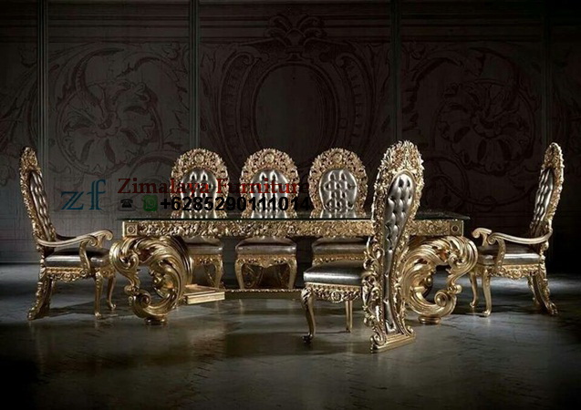 Pada kesempatan kali ini kami dari Furniture Jepara ingin menawarkan produk ruang makan yang sangat Mewah yaitu Kursi Makan Ukir Mewah Warna Emas cocok untuk rumah anda yang Mewah. Kursi Makan Mewah ini bermodel Klasik dengan Ukiran sangat Bagus dan Mewah yang terdiri dari 8 kursi Mewah dan 1 meja dengan model persegi panjang dengan kaki 4 yang besar dan Mewah. Setiap barang Furniture yang berwarna Emas pasti terlihat Mewah oleh karena itu bagi anda yang suka dengan Warna Emas pasti tidak mau ketinggalan untuk memiliki Kursi Makan Ukir Mewah Warna Emas ini.