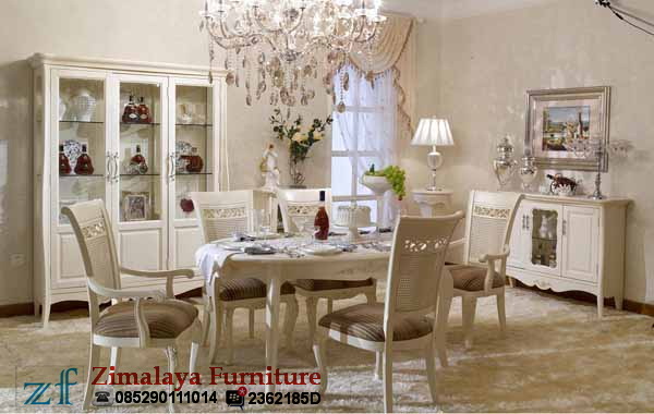 Kursi Makan adalah salah satu kebutuhan primer dalam Furniture Rumah akan tetapi kesukaan seseorang itu berbeda-beda ada yang suka ukiran, minimalis, antik dll akan tetapi dalam postingan kali ini kami www.zimalayafurniture.com menyajikan Kursi Makan Warna Putih yang bagus dan elegan dengan model minimalis modern yaitu modelnya perpaduan antara minimalis, ukiran, zaman dulu dan zaman sekarang yaitu diberi anyaman rotan pada sandarannya akan tetapi pada dudukanya diberi busa yang bagus dan empuk seta dipercantik dengan ukiran khas Jepara yang bagus, rapi dan ber motif. Kursi Makan ini terdiri dari 1 meja dengan 6 kursi dengan warna putih doff yang halus, rapi dan tahan lama.