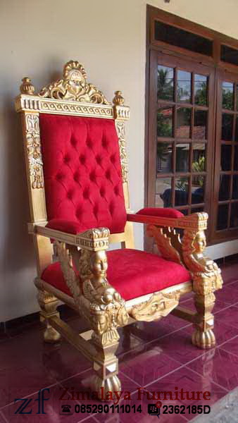 Kursi ini adalah salah satu Kursi yang biasa dipakain untuk Raja atau pengusa lainya yang setara karena modelnya yang besar, mewah dan gagah. Kursi Raja ini terbuat dari bahan kayu jati asli yang berkualitas yang diberi warna emas yang mengkilap serta diberi kain busa berwarna merah sehingga perpaduan warna yang pas menjadikan Kursi Raja ini terlihat bagus dan mewah.