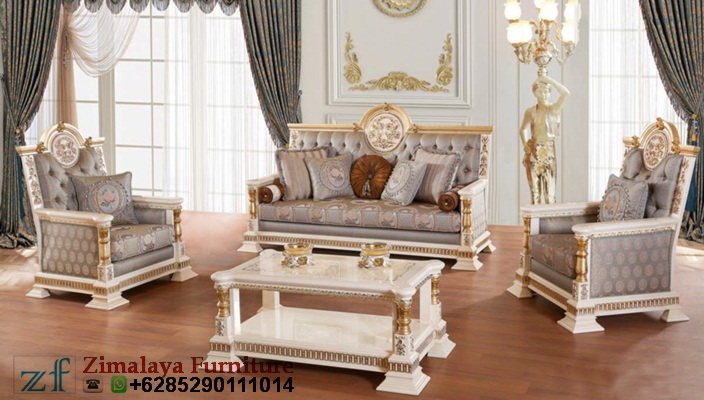 Kami dari salah satu perusahaan Furniture Jepara ingin menawarkan produk terbaru yang Bagus dan Mewah cocok untuk ruanga tamu anda di rumah yaitu Kursi Tamu Mewah 2017. Kursi Tamu ini bermodel seperti Kursi Raja yaitu yang berbentuk kotak dengan kaki yang besar serta pada sandarannya diberi seperti mahkota yang berbentuk bulat seperti bulan. Kursi Tamu Mewah ini terdiri dari 3 kursi (311) dan 1 meja yang diberi Warna putih kombinasi Warna Emas yang halus, rapi dan berkualitas tinggi.