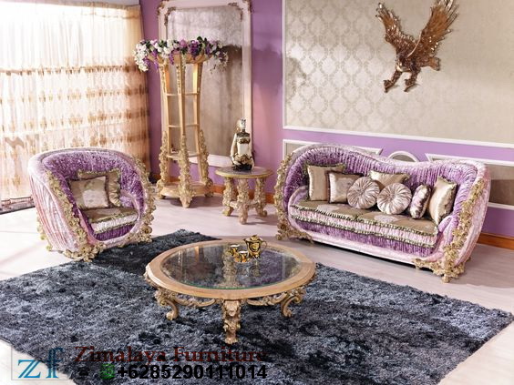 Jual Kursi Tamu Ukir Mawar Emas yang sangat Bagus dan Mewah cocok untuk ruangan anda yang Mewah karena sesuai dengan isi dan modelnya. Kursi Tamu ini bermodel ukiran bunga Mawar yang sangat Cantik dengan model seperti relief yang halus dan rapi apalagi diberi Warna Emas yang mengkilap sehingga terlihat sangat Glammor dan Mewah. Kursi Tamu ini terdiri dari 3 Kursi (221) dan 2 meja atau juga bisa mengikuti formasi ruangan anda. Perpaduan Warna Kain joknya (Ungu) dan Warna Emas pada kayunya menjadikan terlihat sangat Mewah, oleh karena itu bagi anda yang tembok rumahnya berwarna Ungu segera miliki Kursi Tamu Ukir Mawar Emas karena sudah kami contohkan jadinya.