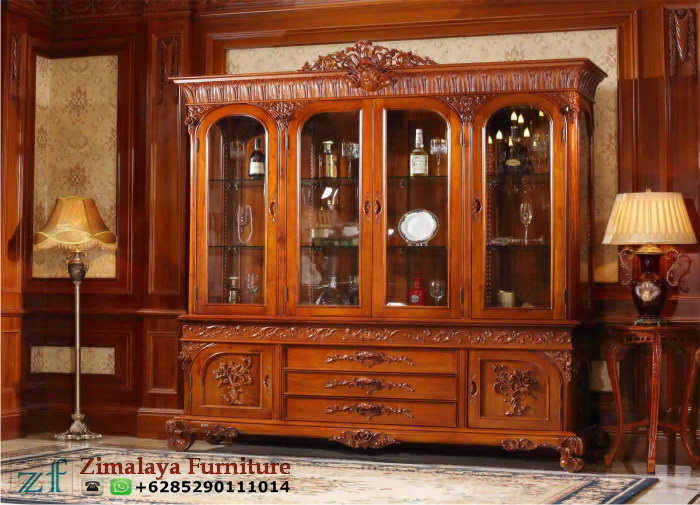 Lemari Hias Antik Jati ini kami tawarkan untuk anda yang baru mencari referensi untuk mempermewah dan memperlengkap ruangan. Lemari Hias ini terdiri dari 4 pintu kaca yang diberi beberapa laci dibawahnya serta diberi ukiran mahkota dan ukiran disetiap tiyangnya. Untuk isi dalam lemari diberi rak/ambalan dari kaca yang berlapis 3 sehingga sangat cocok untuk tempat barang hiasan anda dan juga nantinya akan terlihat sangat bagus dan mewah. Lemari Hias model seperti ini biasanya ditempatkan pada ruang tamu atau ruang keluarga dengan tujuan agar ruangan tersebut tampil elegan dan mewah.