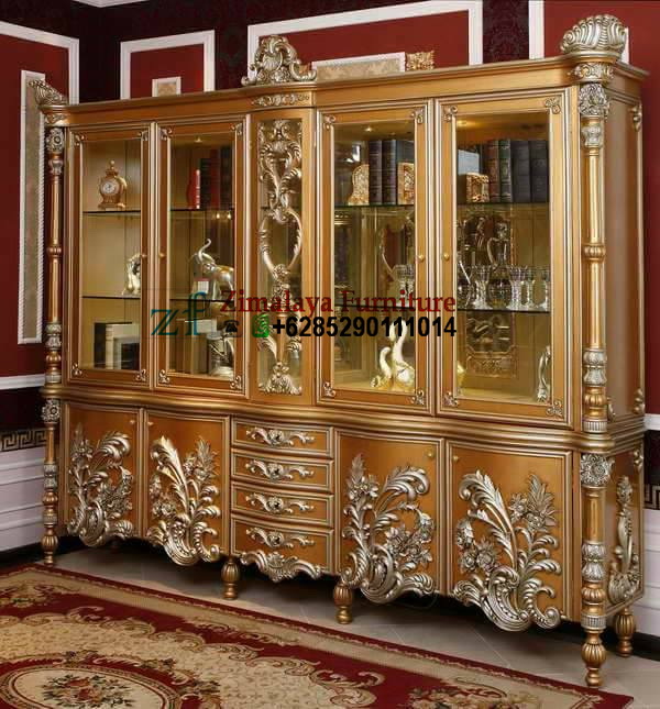 SPESIFIKASI LEMARI HIAS MEWAH WARNA EMAS