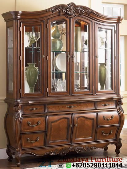 Jual Lemari Pajangan Jati Antik yang diproduksi oleh pengrajin Furniture Jepara asli yang spesialis dan berpengalaman. Lemari Pajangan ini bermodel Antik dengan 4 pintu kaca serta bawahnya juga diberi pintu akan tetapi dibuat dari kayu semua dan modelnya melengkung kedepan. Mengenai warnanya menggunakan warna natural jati doff yang halus, rapi dan tahan lama dikarenakan kami produksi dari bahan-bahan berkualitas.