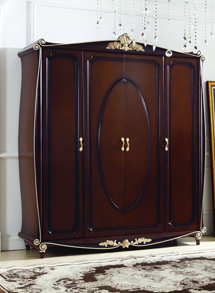 Jual Lemari Pakaian Klasik Modern diproduksi dari bahan-bahan yang berkualitas tinggi dan diproses oleh pengrajin Furniture Jepara spesialis dan profesional yang ahli dalam bidang kayu dan kontruksi. Lemari Pakaian ini terdiri dari dari 4 pintu dengan model klasik modern yang diberi warna kombinasi salak dan emas serta pada ulirnya diberi warna hitam sehingga dari perpaduan warna ini menjadikan lemari terlihat bagus dan mewah.