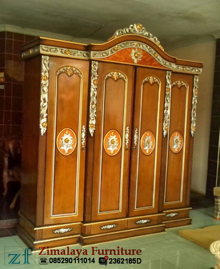 Lemari Pakaian Mahkota ini diproduksi dari bahan kayu jati asli yang berkualitas dengan model mahkota spanyol motif ukir yang bagus dan elegan serta dengan kombinasi warna yang cantik. Lemari Pakaian ini terdiri dari 4 pintu yang didalamnya 2 pintu  tengah untuk gantungan dan 2 pintu kanan kiri untuk raknya sehingga anda bisa menempatkan pakaian anda sesuai dengan model pakaian anda.