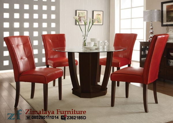 Jual Meja Makan Bundar Kursi Minimalis yang sangat bagus dan cocok jika ditempatkan dirumah anda yang model Minimalis juga. Meja Makan ini bermodel dengan desain yang dinamis yaitu dengan model bundar yang bercabang 4 dan untuk top mejanya diberi kaca tebal berbentuk bundar yang berukuran 8mm sehingga tidak akan bergoyang dan pecah jika ditaruhin makanan. Untuk kursinya bermodel Kursi Minimalis dengan kaki 4 yang belakang dibentuk melengkung serta dibalut dengan kain oscar yang berwarna merah serta diberi variasi cantik yang berupa paku.