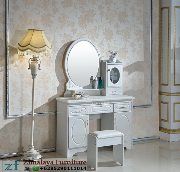 Meja Rias merupakan kebutuhan primer untuk kaum hawa akan tetapi banyak model dan desain Meja Rias oleh karena itu pada kesempatan kali ini kami dari perusahaan Furniture Jepara menawarkan Meja Rias Minimalis Warna Putih dengan desain yang dinamis, warna yang cantik dan pastinya sangat cocok untuk anda saat bermekup. Meja Rias yang dilengkapi dengan beberapa pintu dan laci serta diberi cermin kacayang berbenituk oval dan dilengkapi dengan kursi kecil untuk memperlengkap Meja Riasnya.