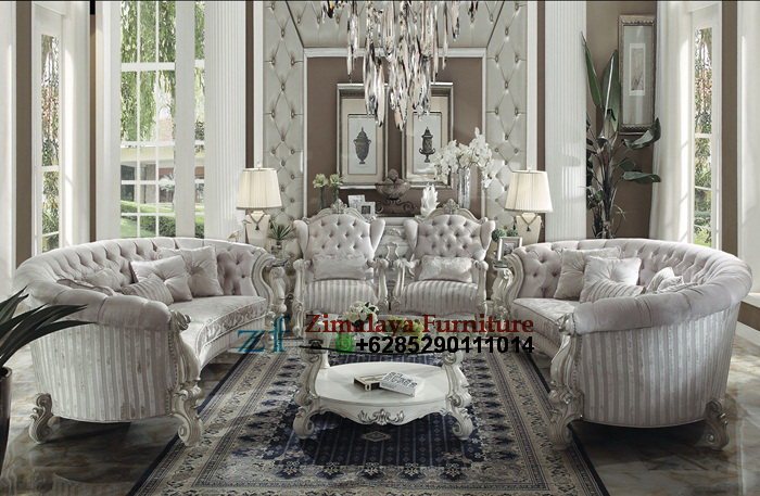 KURSI TAMU KLASIK UKIR WARNA PUTIH